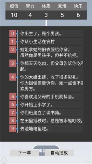 4、可以自动播放生成的人生故事,选择不同每次的人生不同,如果不满意可以重启。