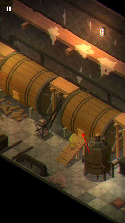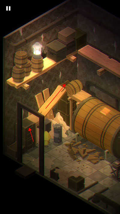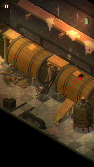 8、转动开关,将木桶弄到地下来,推动开木桶,门打开,去往下一个房间。