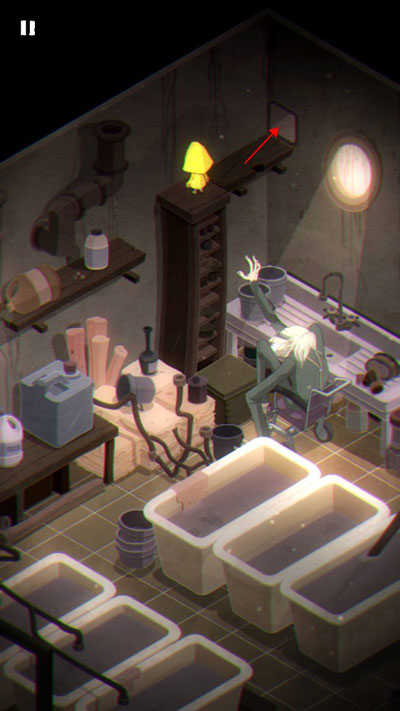 17、一路追着小孩来到一个上锁的房间,小孩发现摩诺没有恶意后二人成为伙伴,然后在二人一起努力,成功将前往阁楼的楼梯放了下来。