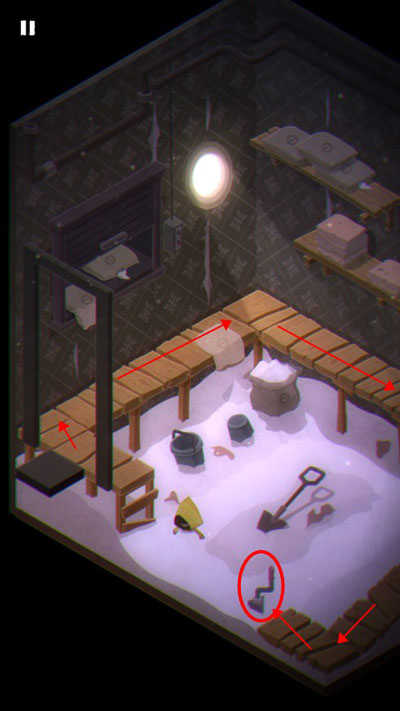 16、再拿起斧子破坏地下室楼梯间左侧的木板,然后触发剧情。