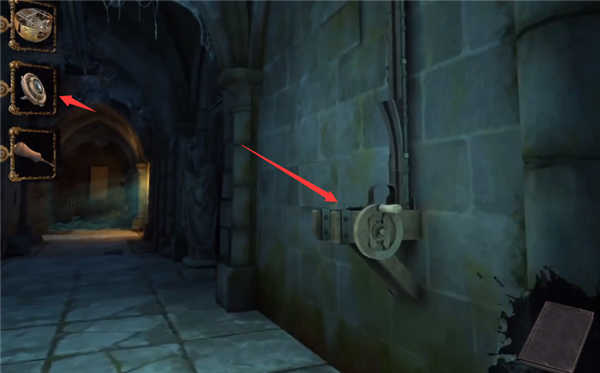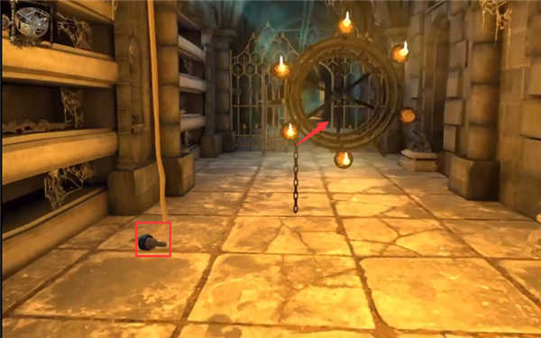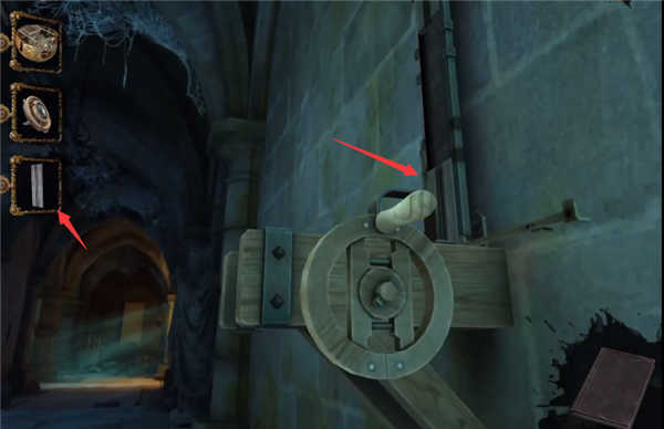 8.向上拖动机关,左侧绳子落下,点击左侧绳子。