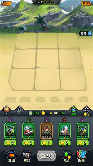 3、选好小兵后将其拖动到方块里来上阵,上阵完毕后点击出战就可以开始战斗。