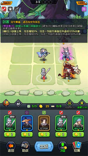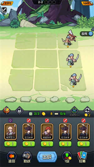 4、有很多英雄可以让玩家去招募来进行战斗,不同的兵种组合会让你体验到不一样的闯关乐趣。