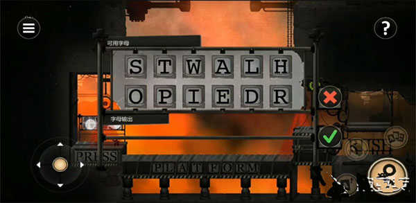 字母组合:例如滚落石缝时与两侧字母组成“DROP”触发下落机关。