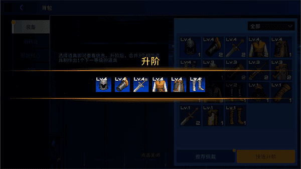 3、点击“快速升阶”按钮,即可一键为所有装备进行升阶操作。