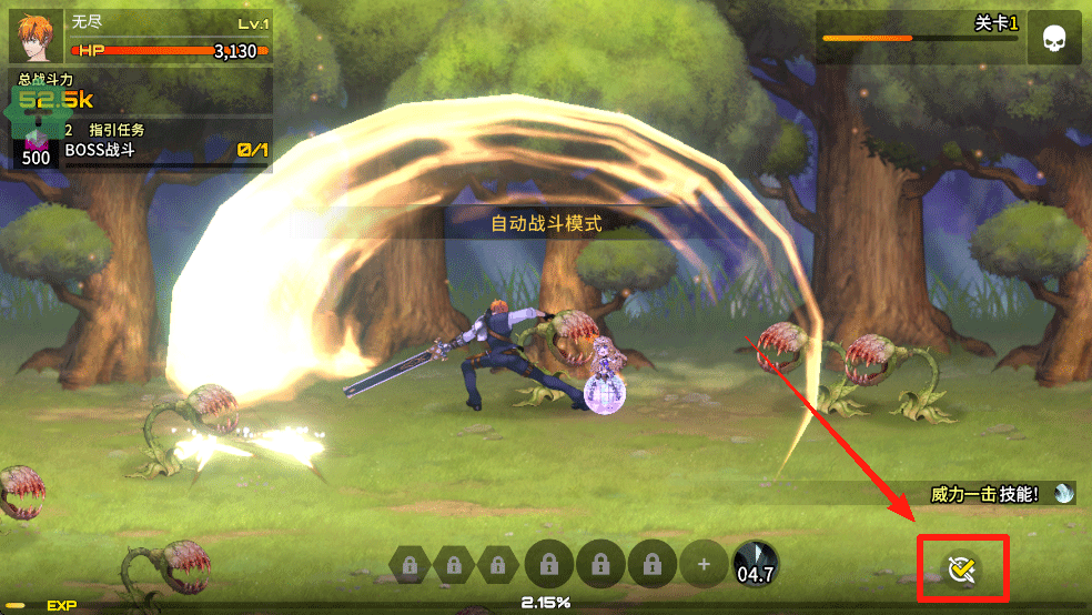 3、如果想轻松一点,也可以开启“自动攻击”模式,让角色自动完成战斗。
