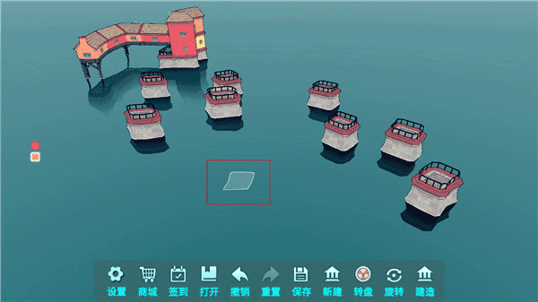 3、当水面上出现如下图标识时,玩家可以通过点击来进行水上建筑的建造。