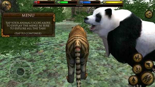 游戏中我们通过屏幕左下角的虚拟腰杆进行走位控制,可以使用右下角的各种按钮来控制动物的攻击和闪躲,这些按钮包括攻击、跳跃、冲锋、怒吼、潜伏等。