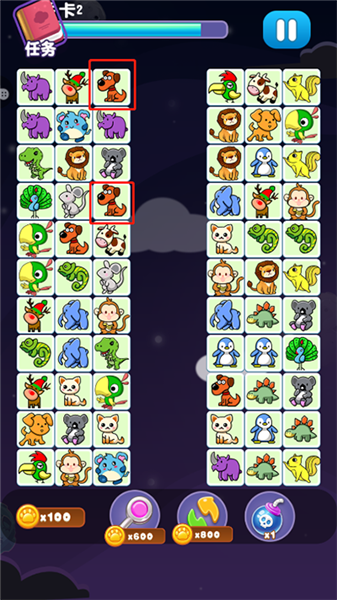 4、消除玩法很简单,只需要将相同两种牌连接在一起即可消除,但是注意两种牌的连接拐弯不能超过两个