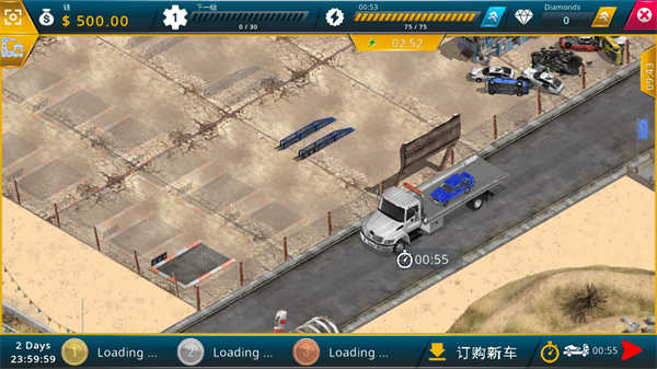 2、正式开始后每隔一段时间就会送来一辆报废的车辆,你需要花费一定金币来收购这辆废车。
