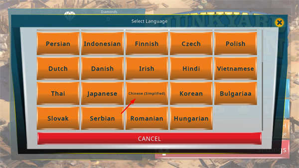 2、然后选择Chinese选项就可以将游戏设置成中文版。