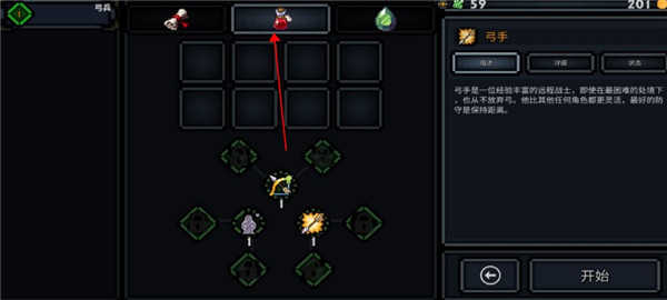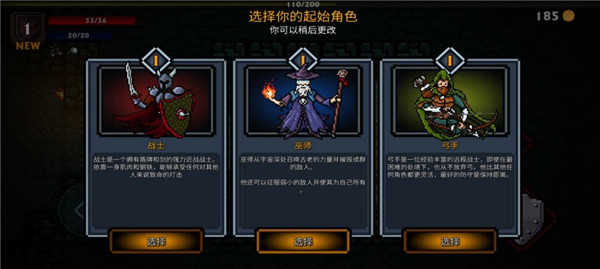 7、游戏开局会有三个角色,战士、弓箭手、巫师,不同角色技能是不一样的,玩家可以自己慢慢探索下哦。