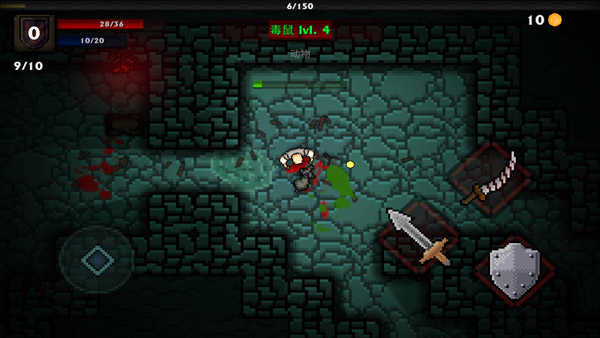 5、楼层越高,难度越大,墙壁会释放武器,怪物也会丢武器攻击,可能会中毒,玩家血量会减少,屏幕有一闪一闪的感觉。