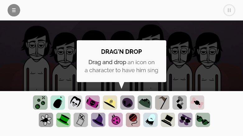 每个角色代表一个音轨或节奏层,玩家需将装饰物(如帽子、麦克风、乐器等)拖拽到角色身上。