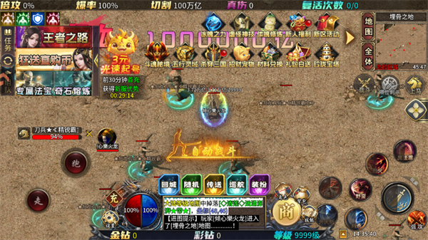 2、跨服战场与PVP:游戏支持跨服战场,玩家可以与其他服务器的玩家进行实时对战。这种设定不仅增加了游戏的竞技性和挑战性,还让玩家能够结交更多志同道合的战友。