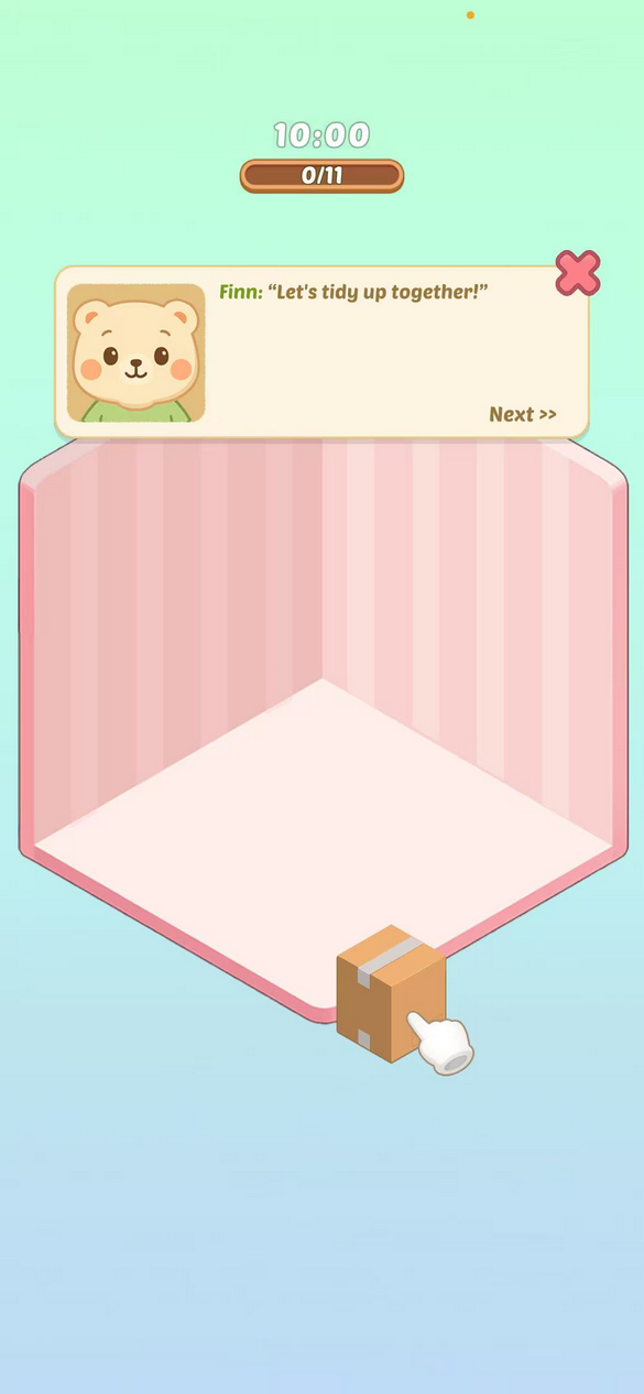 1、开始一系列的收纳挑战,卡通画风打造,玩起来相当的减压。