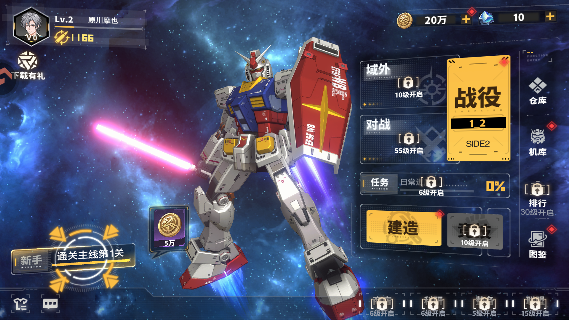 次日登录即送SSR级「V高达」,每日十连免费送,高级机体轻松获得,零氪全收集不是梦。