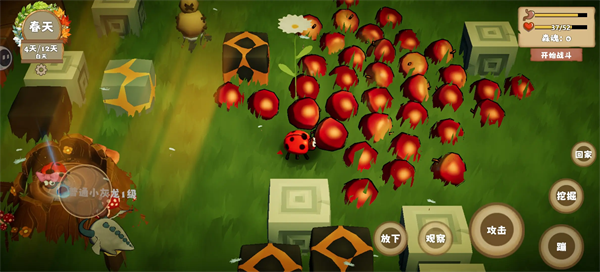 4、角色具备基础攻击能力,可对小型竞争生物或入侵者发起驱逐行为,战斗机制采用简化版耐力条系统,避免复杂操作。