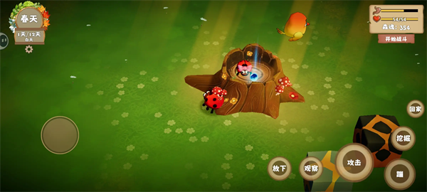 我是虫虫最新版是一款有趣的角色扮演游戏。玩家将体验和扮演一只可爱的小瓢虫,通过12天的生存考验,守卫好自己的家园。在游戏中分为两个时间节点,玩家在白天的时候可以外出探索,收集食物或者其他物资,还可以结交新的伙伴,但是要小心,野外区域可能会有捕捉瓢虫的人类或者其他动物,一旦被抓到就要回到家园重新外出。晚上的时候玩家则需要布置白天的物资以防御前来袭击家园的敌人,保护家园安全。