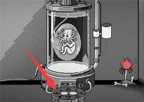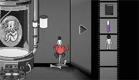 14、然后回到培养皿所在房间,点击培养皿前面的祭坛。左侧放上老鼠心脏,右侧放上人偶,唤醒克苏鲁幼崽。然后将毒药对准喂食口使用,之后培养皿玻璃破碎,游戏结束。