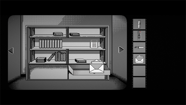 2、开始游戏后,玩家将在一间屋子中醒来,你可以通过左右三角形前往查看其他房间,也可以与各种物品互动;