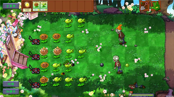 3、刚开始只有向日葵和豌豆射手,随着玩家的关卡解锁后续可以开放更多植物;