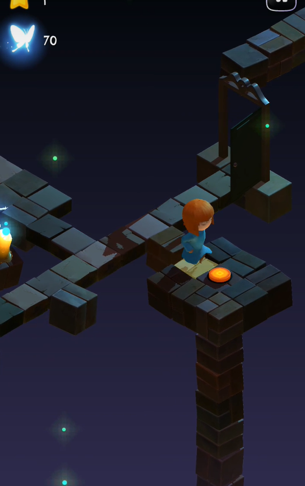 5、人物会再次从第一个门出来,这时候灯还没有升上来,先往上方走绕圈,灯升上来之后这次不踩,直接前往门口。