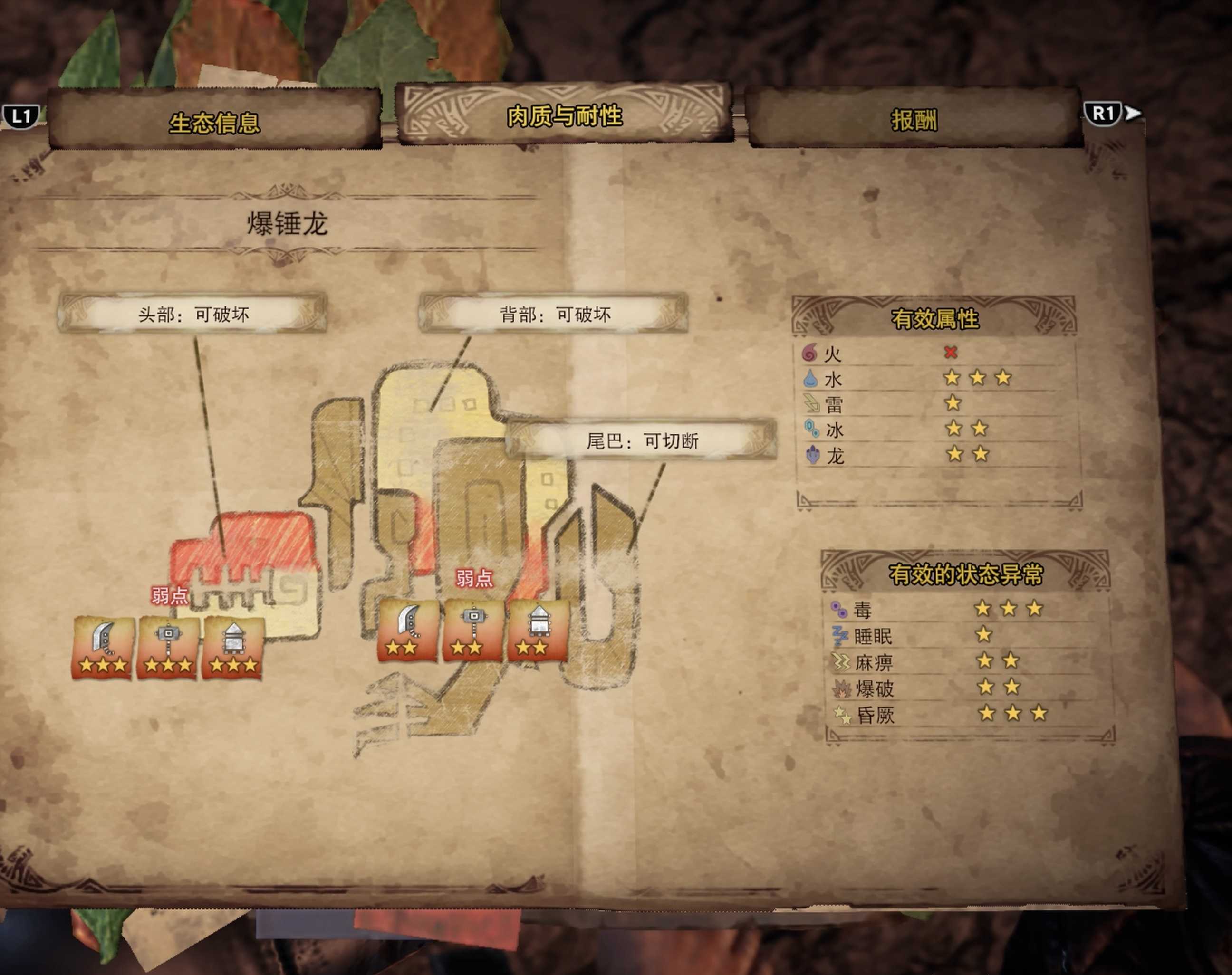 ● 破坏部位可以帮助获取部位对应的怪物素材;