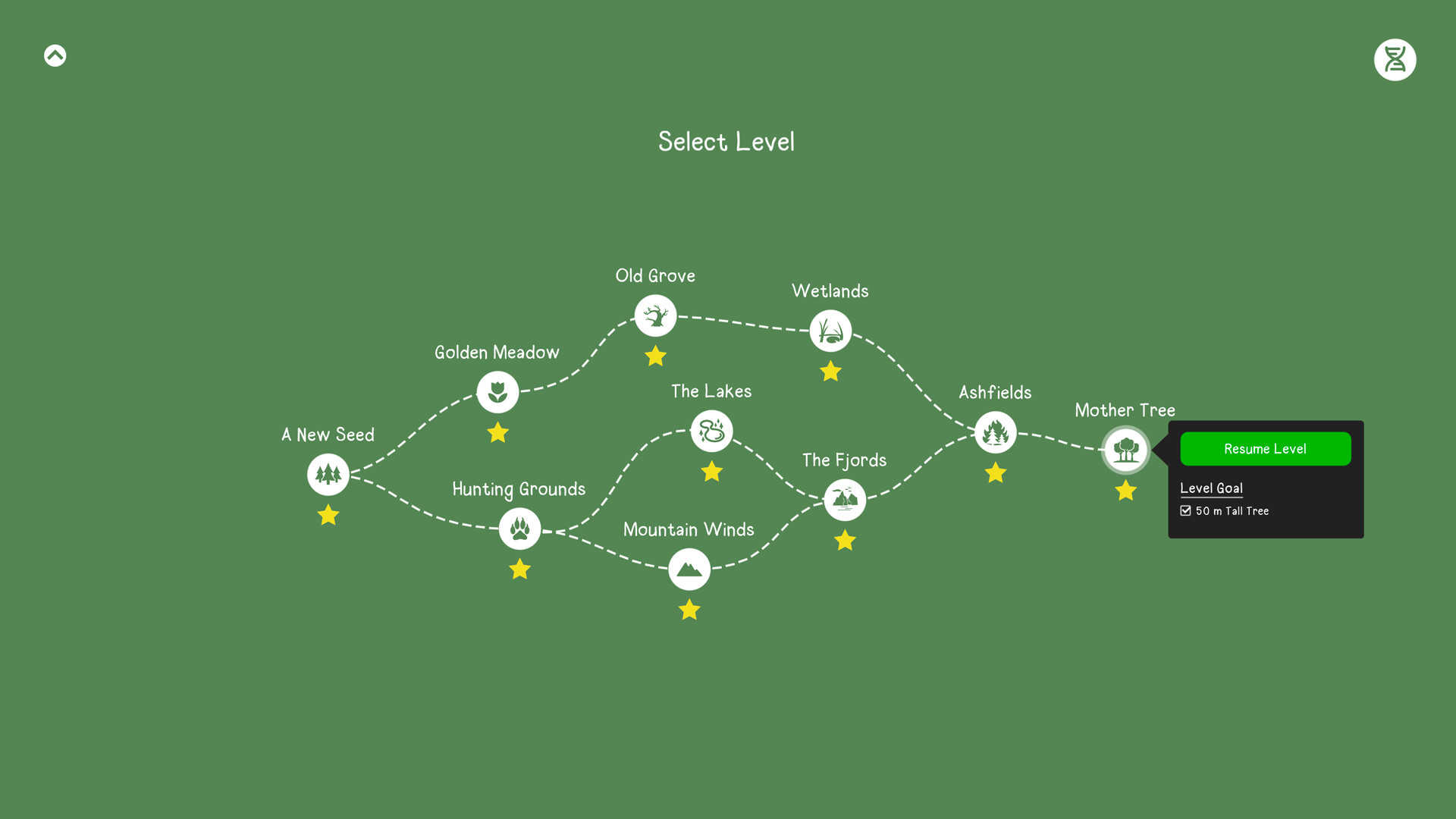 注意点:主菜单的树结种子无法点击,只能等待其自然落地种植。因为山羊柳的生存需求为不处于树下,所以种两棵树的成就会比较难达成一点。推荐种子一落到其他树底下就进入一个关卡再退出。但成就必须是在同一界面种两棵树,不是分批种,切两次种,这个就看各位运气了。