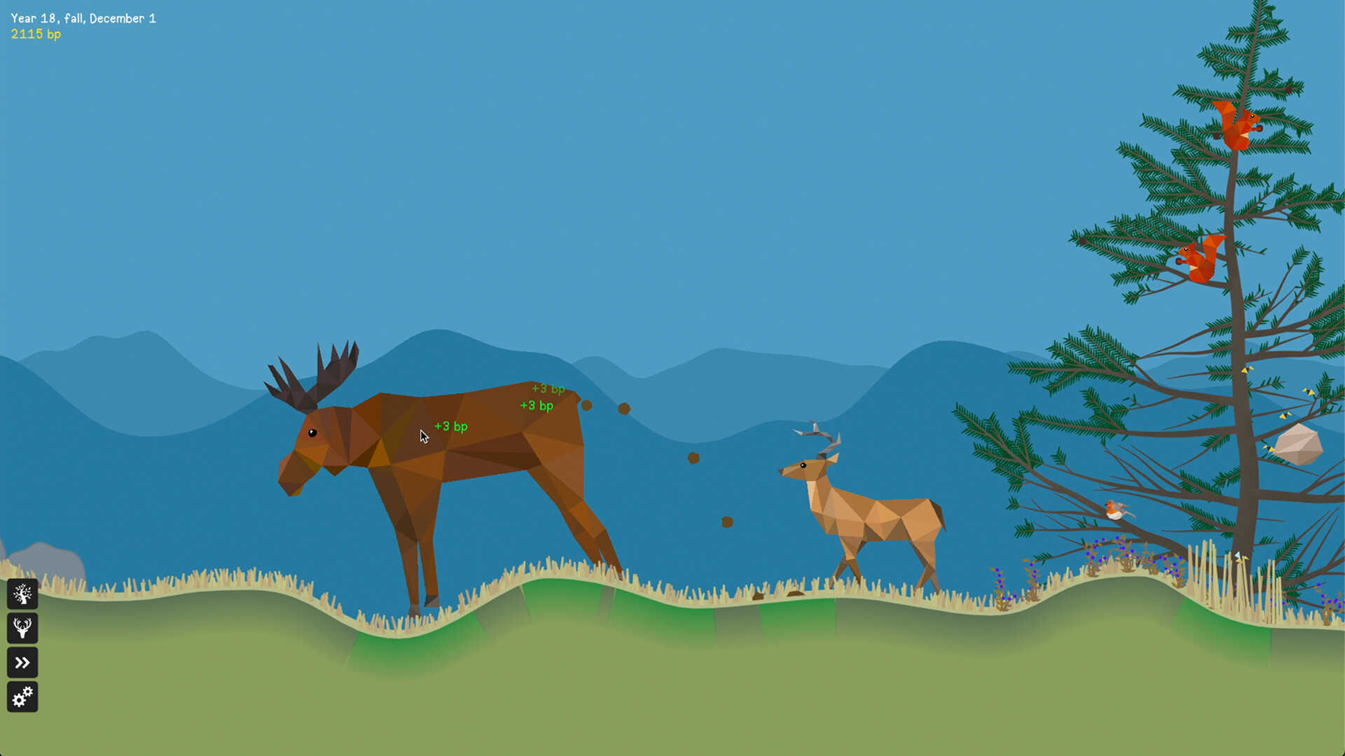 游戏采用实时时间流逝机制,几年的时间可以在几分钟内快速展开,让玩家见证森林的成长。