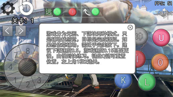 2、为了帮助你精准把握指令输入时机,游戏中特别加入了光圈和下落块两种连段辅助功能。