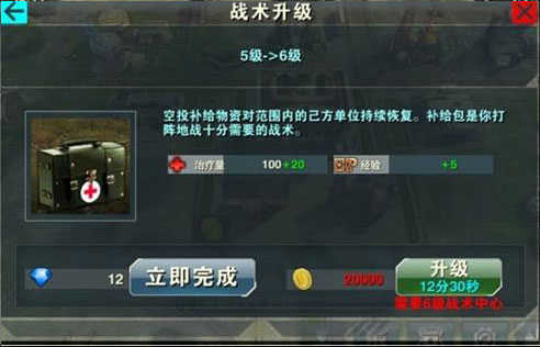 选择所需升级战术,可查看战术升级后所增加属性及消耗资源