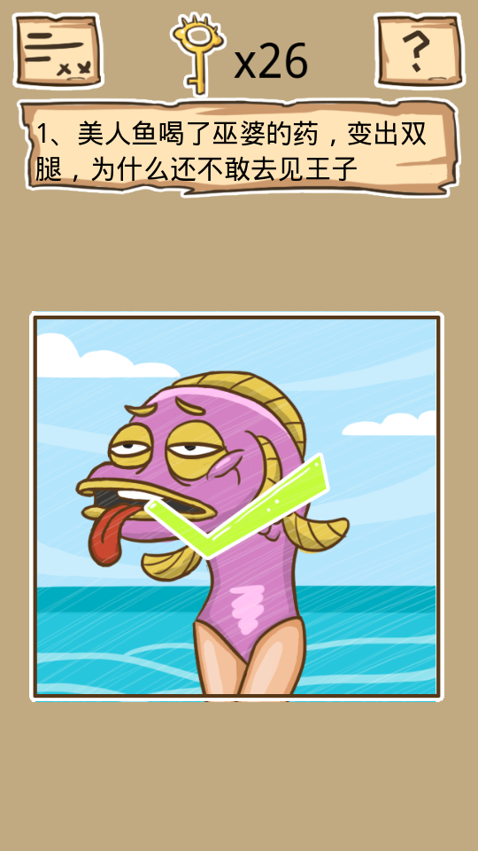 1、点击屏幕往下滑动,看到美人鱼的脸即可。