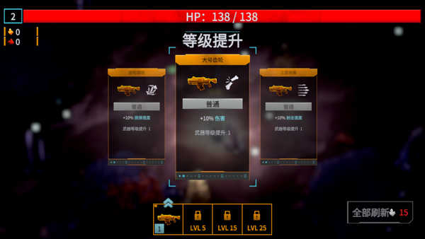 5、游戏为自动射击模式,通过击败虫群获取经验升级,每次升级都能从多项强化中任选其一。
