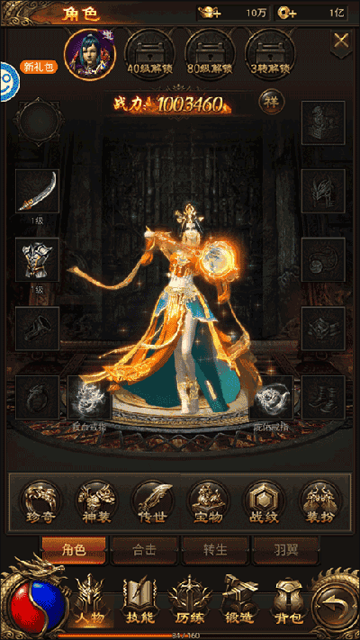 4、【图鉴】通过行会BOSS、签到等途径收集图鉴,激活后可提升基础属性。最后三个图鉴提供职业专属加成,建议优先收集本职业图鉴。金装可通过商城5折购买或参与充值活动获取。
