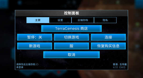 2、来到星球控制面板,这里有游戏主要的设置等等