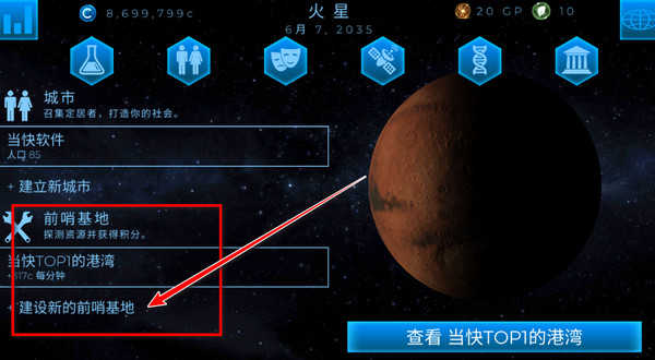 1、点击游戏主界面上方的“火星”二字