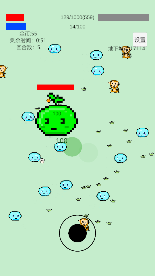 3、通过击败场上史莱姆获取金币用来在结束回合的时候购买卡牌,同时也会获得地下城币。