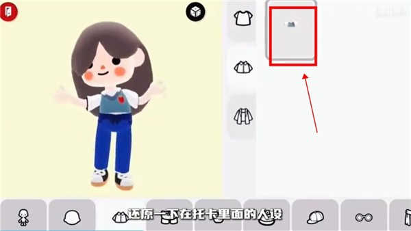 3、然后点击这个下图这个方框里面的衣服,还原一下在托卡里面的人设。