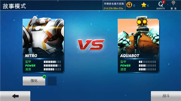3、选择你的机器人进入对战,不同的机器人对应的速度、防御等也不同;