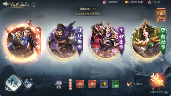 ★ 乱世逐鹿模式分为乱世和中原两个板块,两个板块的难度等级的开放均和主角等级相关,两个板块的产出均为战法,在相同的主角等级的情况下乱世产出的战法评分一般比中原产出的战法评分高,不过乱世的难度更高,且每次挑战需要消耗2点军令,每日只可挑战3次。