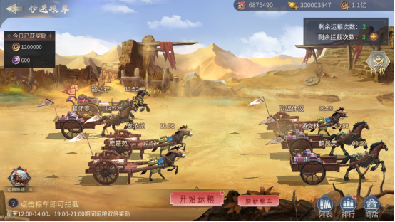 ★ 在每日的12:00-14:00、19:00-21:00期间押镖可获得双倍奖励,每日可押镖两次,镖车的等级越高获得的奖励越丰富,升级镖车所需的押镖令可通过每日任务和寻宝转盘获得。每日可免费拦截3次镖车拦截的镖车等级越高获得的奖励越丰富,每个镖车最多被拦截3次。同时押运和拦截都可获得积分,每期积分排名可获得额外奖励。