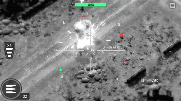 优先用 “放大镜头” 锁定敌方红色标记,避免遗漏隐藏敌人;用机炮清理步兵时,控制开火频率,防止武器过热;遇到悍马装甲(血量厚),留存 5-6 发炮弹或直接用导弹精准打击。