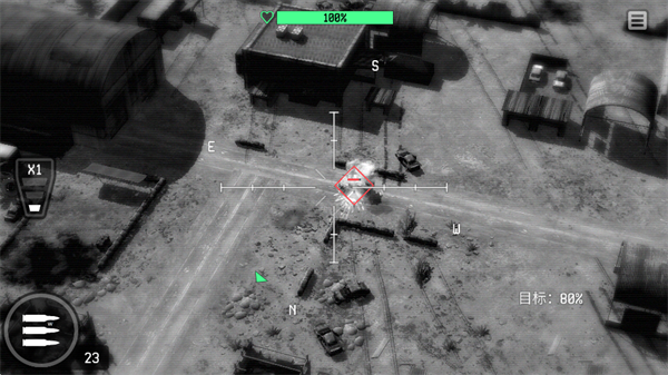战争无人机陆军轰炸机是一款无人机射击模拟飞行游戏。游戏画质写实,无论是夜晚的夜视仪效果还是炮弹的爆炸特效,都能够完美的呈现。玩家需要操控无人机执行各种任务,如保护任务,歼灭任务等,且无人机可以搭载25毫米加特林机炮、海德拉70火箭以及地狱火导弹等多种重型武器。手游关卡数量也是丰富多样,每个关卡内的敌人也不同,而且随着关卡的深入,游戏难度也会随之提升,非常考验玩家的思维策略能力。