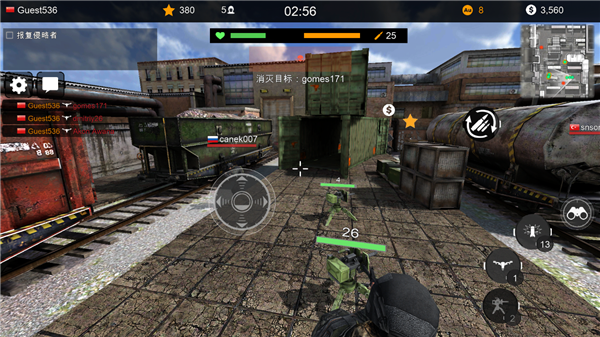 代码枪手是一款惊险刺激的枪战射击类游戏。游戏采用写实逼真的战场地图设计,开局就能进入战场之中展开激烈刺激的战斗对抗,超多作战方案可以随意安排,可以通过实时语音系统提前交流战术展开行动,在这个全球性的竞技场上,你将与来自世界各地的玩家展开激烈的对战,挑战自身枪战技巧,争夺全球排行榜的巅峰地位。通过不断升级你的战士,提升技能和精通度,打磨出一位更加强大的角色。与朋友组成默契团队,共同征战,共享荣耀。
