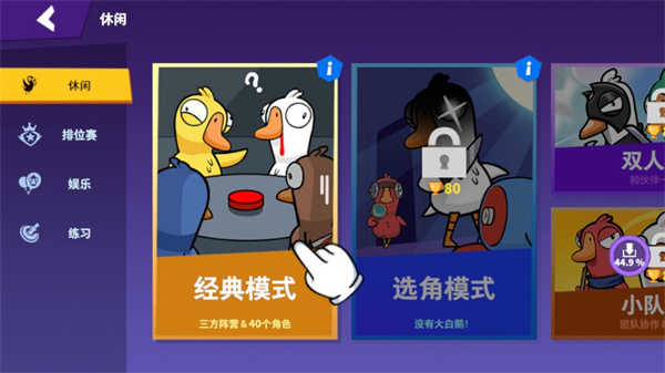 鹅鸭杀3D,一款充满趣味和策略的太空杀手游,基于经典狼人杀玩法,加入了多种职业和机制,增加了更多的变数和策略性。玩家可以选择不同角色和阵营,进行推理与对抗,寻找线索揭示隐藏的内鬼或巧妙掩藏自己。游戏场景丰富,剧情精彩,提供多样的挑战和任务,玩家在激烈的战斗中获得奖励和道具。此外,丰富的服饰和隐藏彩蛋也让游戏充满乐趣,每次对战都充满惊喜!