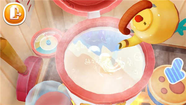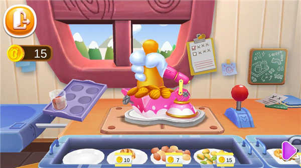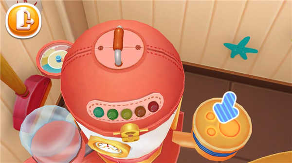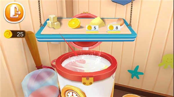 宝宝希望糖果的口味更丰富?那就得在糖浆原液上“下功夫”。料理台上,榨汁机、磨粉机都给出“提示”,答对了,可以在糖浆中加入多样的果汁、细粉末。