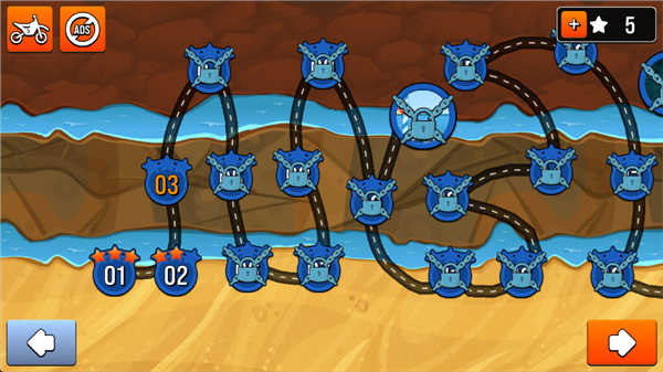 5、当玩家成功达到终点,根据评分给星,完成相应闯关可以解锁全新的摩托车;