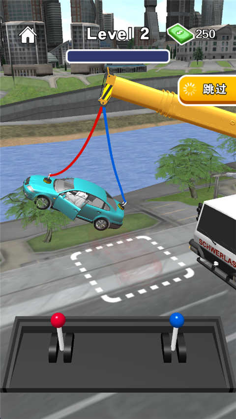 玩家通过控制屏幕上的操控杆来控制吊车,通过控制吊车的抓取和伸缩,将指定的物体移动到正确的位置即可成功通关。