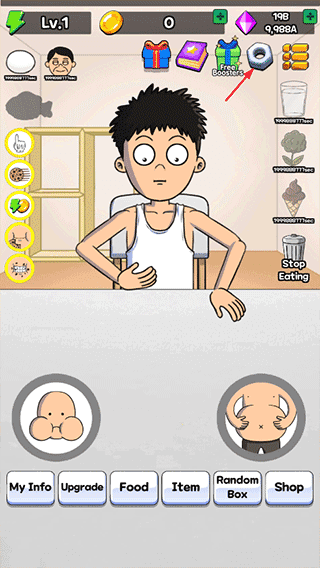 3、下面开始游戏挑战,点击人物吃掉面前的食物,如下图所示